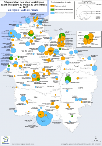Fréquentation des sites touristiques ayant enregistré au moins 20 000 entrées en 2023 en région Hauts-de-France
