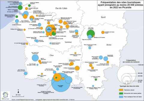 Fréquentation des sites touristiques ayant enregistré au moins 20 000 entrées en 2023 en Picardie