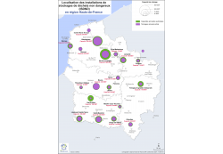 La carte met en évidence la localisation des installations de stockages de déchets et leur capacité
