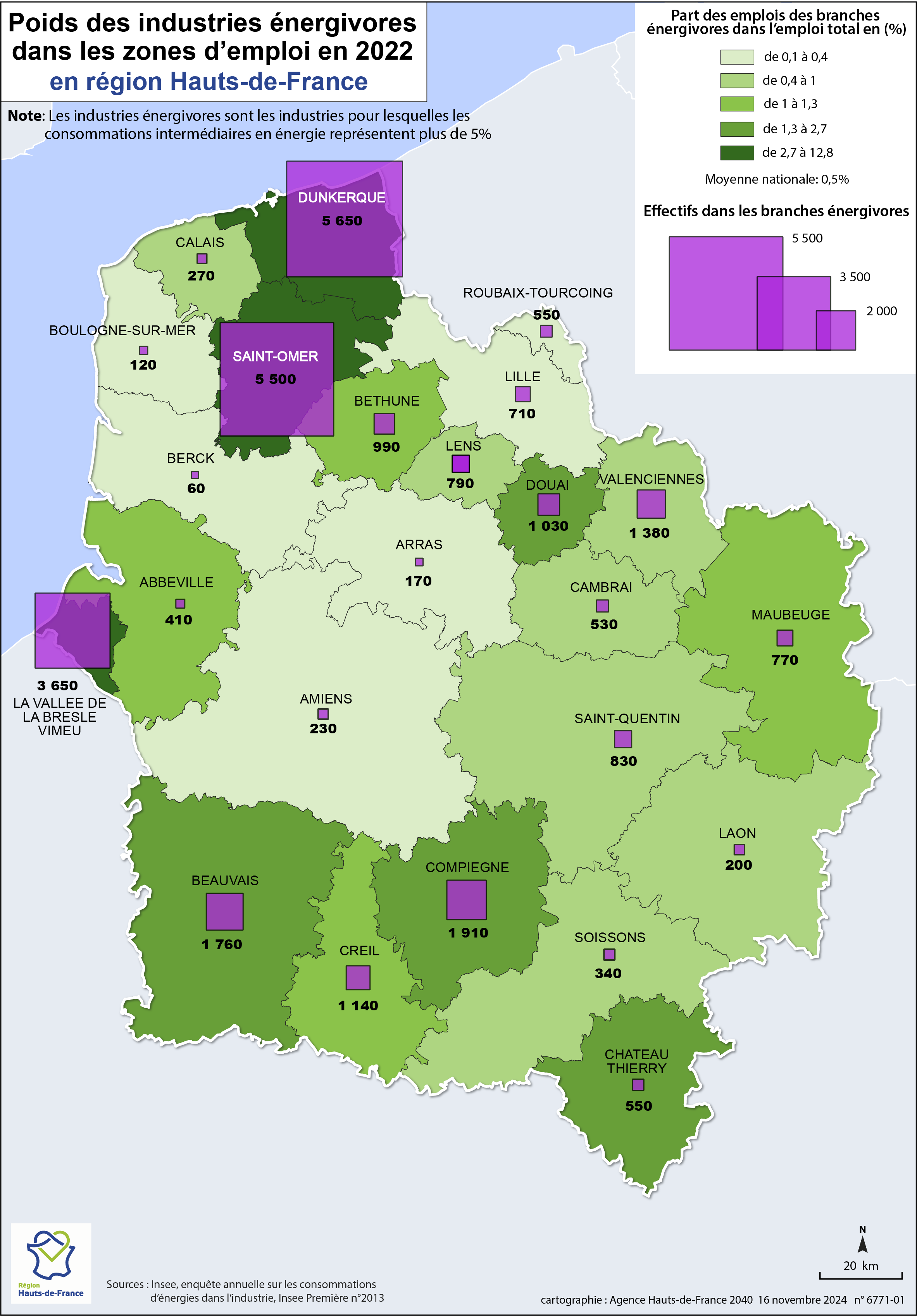 La carte met en évidence la part des emplois des branches énergivores dans l'emploi total ainsi que les effectifs