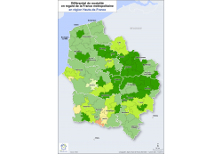 Carte présentant les déplacements professionnels entre le sud de la région Hauts-de-France et le nord de la région Île-de-France. La carte est basée sur les données des mobilités professionnelles de l’INSEE.