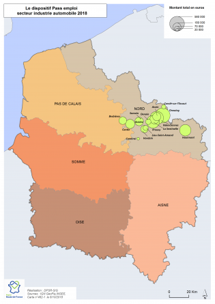 Représentation de la population par département et du dispositif Pass Emploi dans le secteur automobile aprés 2018