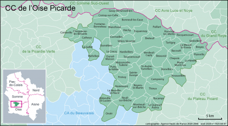 Zoom sur l'Etablissement Public de Coopération Intercommunale (EPCI) en question avec le découpage communal le concernant.