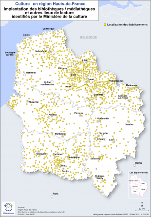 Culture - Implantation des bibliothèques / médiathèques et autres lieux de lecture identifiés par le Ministère de la Culture en région Hauts-de-France