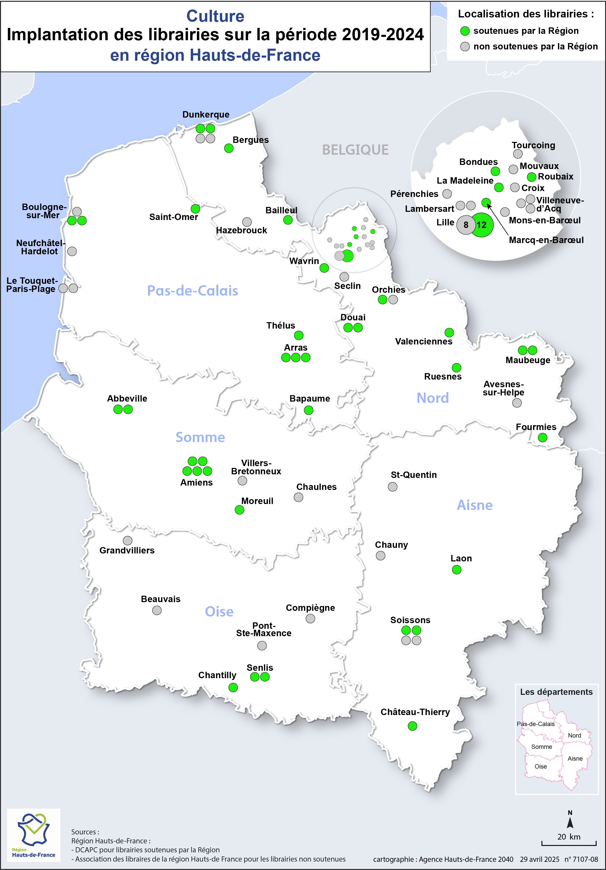 Culture - Implantation des librairies sur la période 2019-2024 en région Hauts-de-France