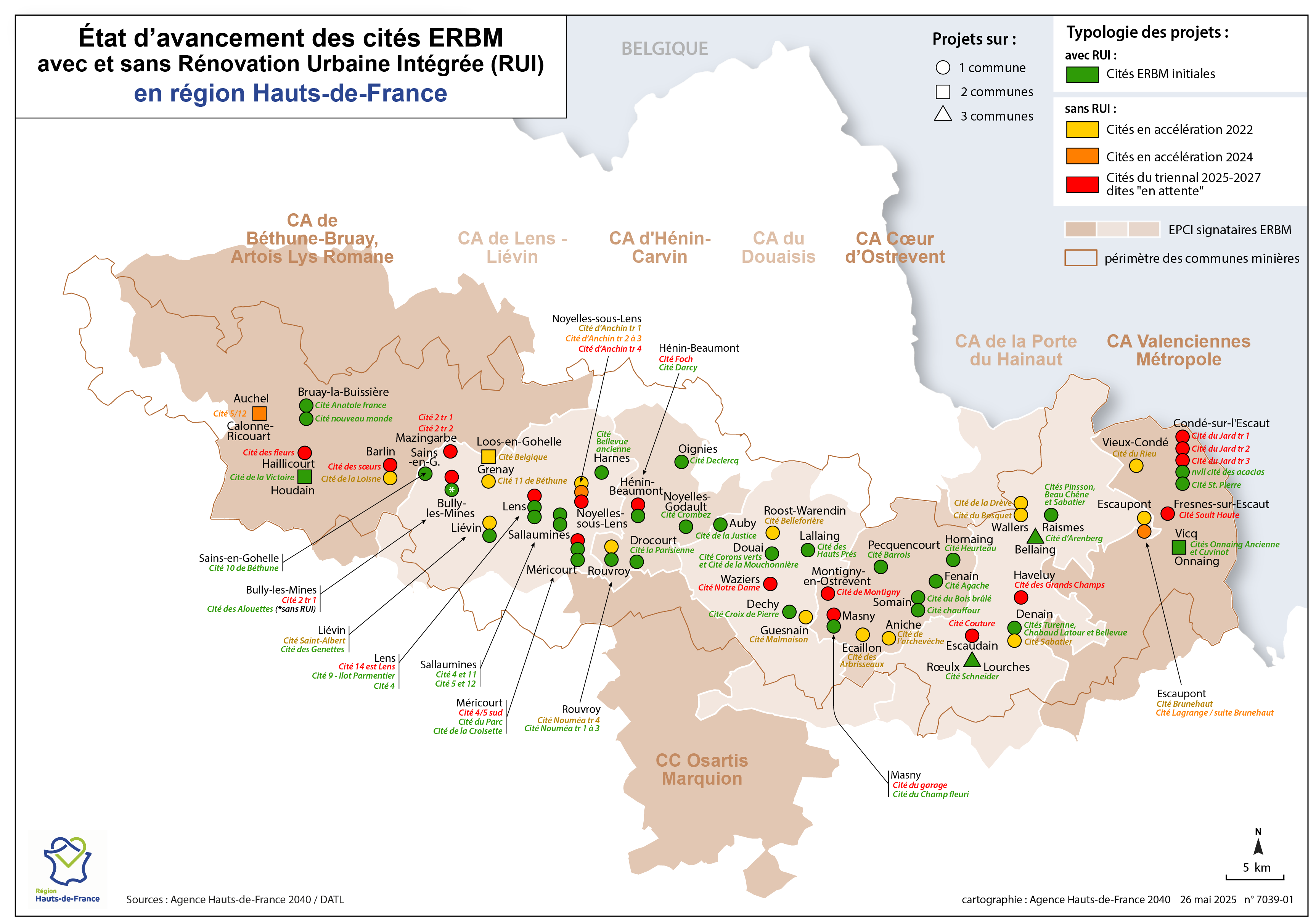 Etat d'avancement des cités ERBM avec ou sans Rénovation Urbaine Intégrée (RUI) en région Hauts-de-France