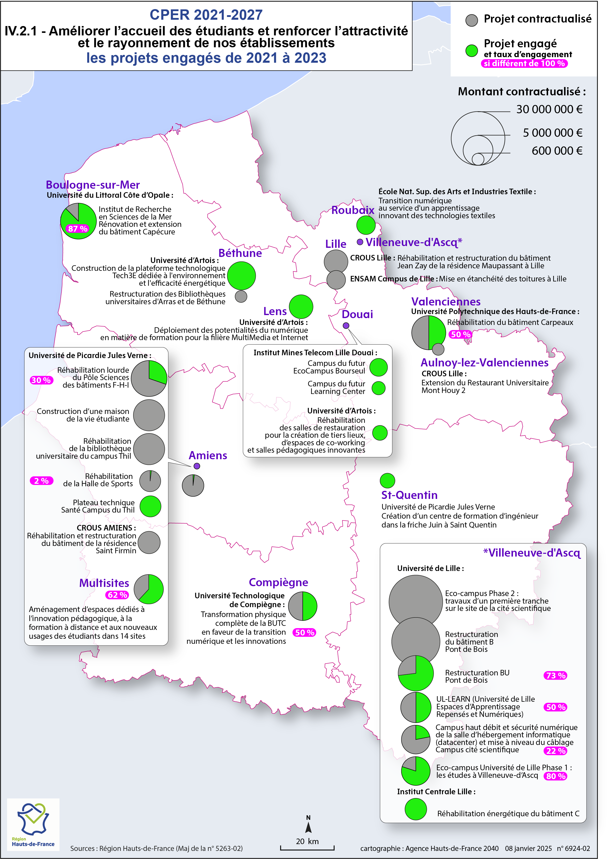 CPER 2021-2027 - IV.2.1 - Améliorer l'accueil des étudiants et renforcer l'attractivité et le rayonnement de nos établissements - Les projets engagés de 2021 à 2023