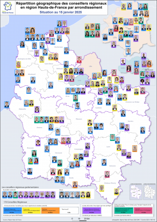 Répartition géographique des conseillers régionaux en région Hauts-de-France par arrondissement- Situation au 15 janvier 2025