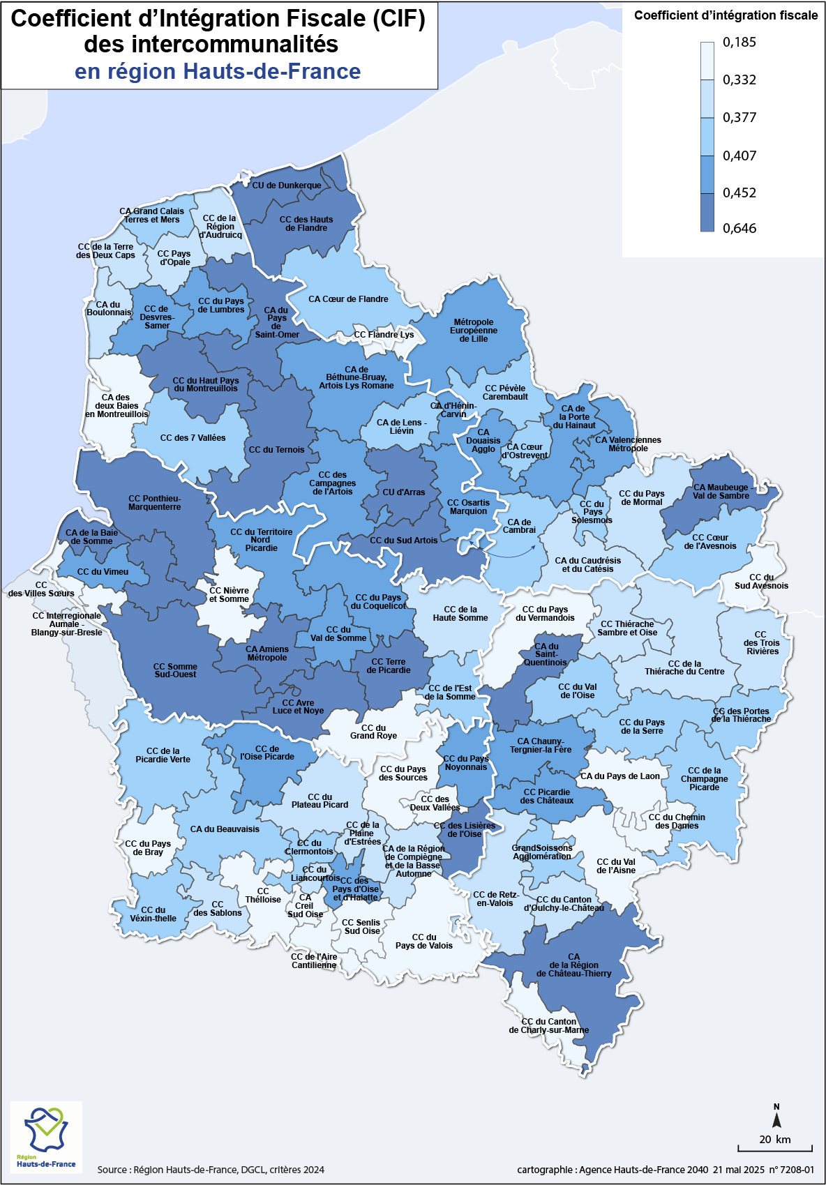 Coefficient d’Intégration Fiscale (CIF) des intercommunalités en région Hauts-de-France