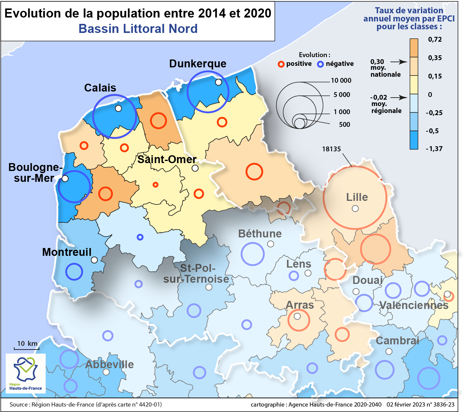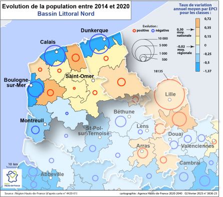 Evolution de la population entre 2014 et 2020 Bassin Littoral Nord