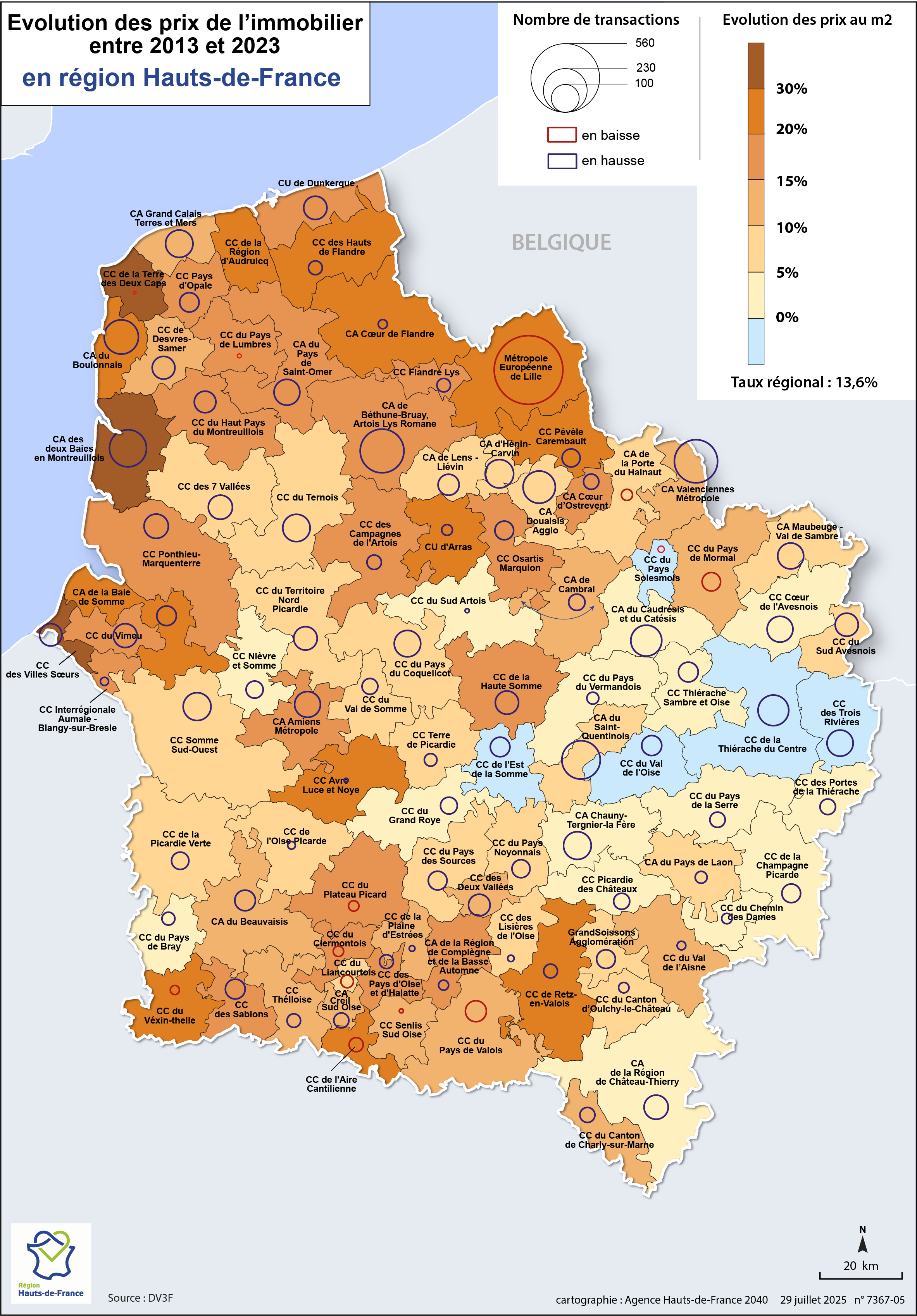 Evolution des prix de l’immobilier entre 2013 et 2023 en région Hauts-de-France