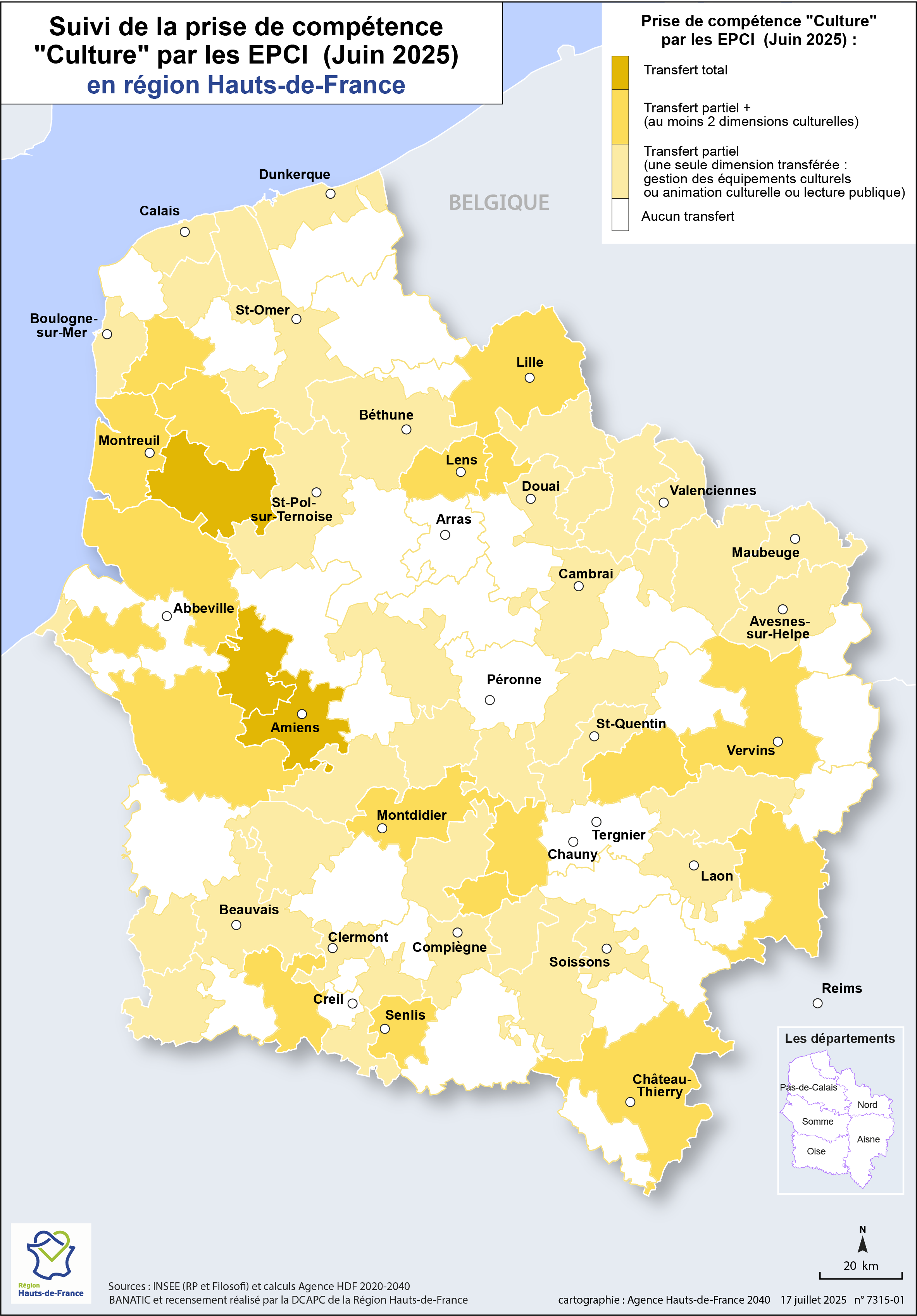 Suivi de la prise de compétence Culture par les EPCI (Juin 2025) en région Hauts-de-France