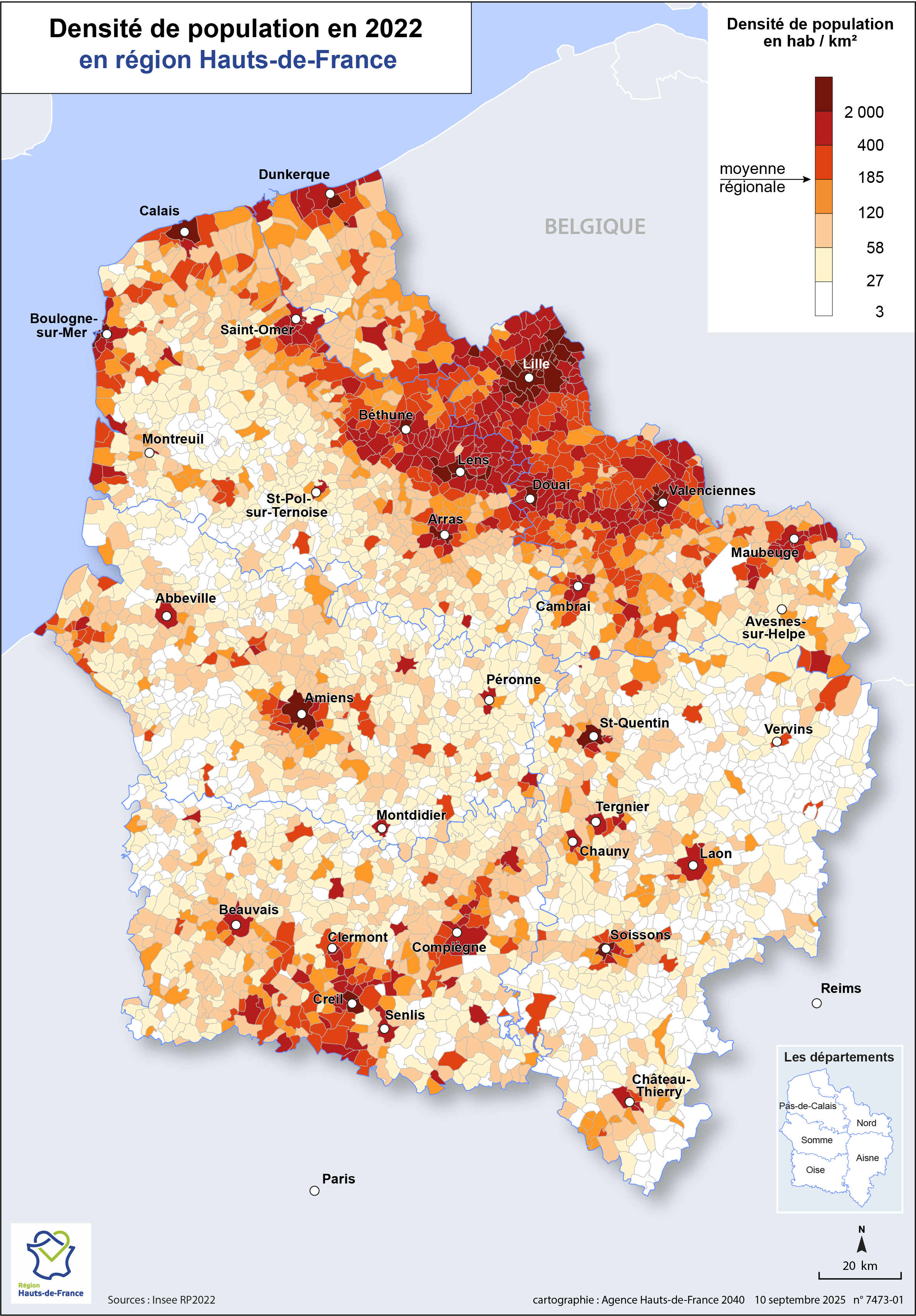 Densité de population en 2022 en région Hauts-de-France