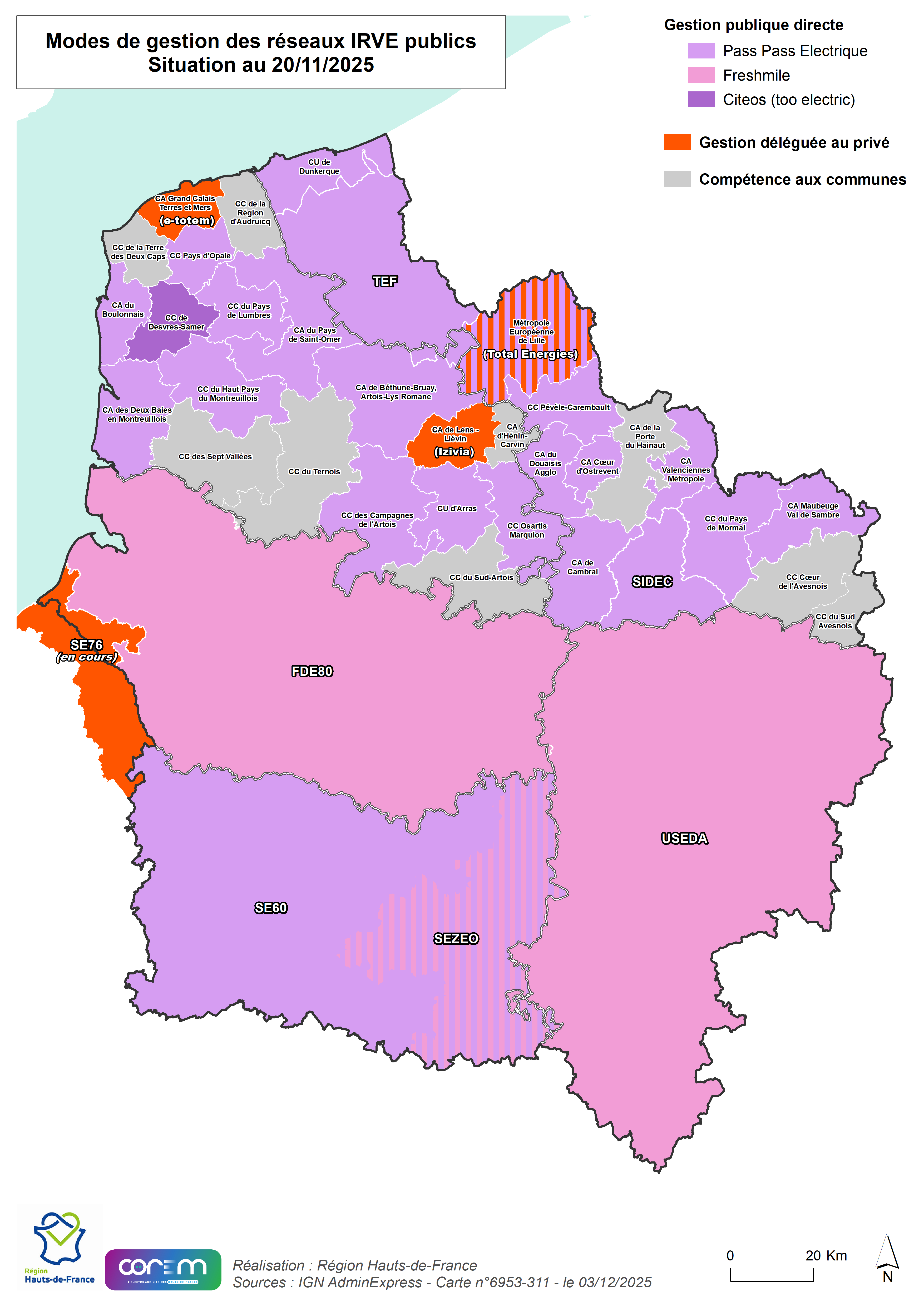 Modes de gestion des réseaux IRVE publics - Situation au 20/11/2025.