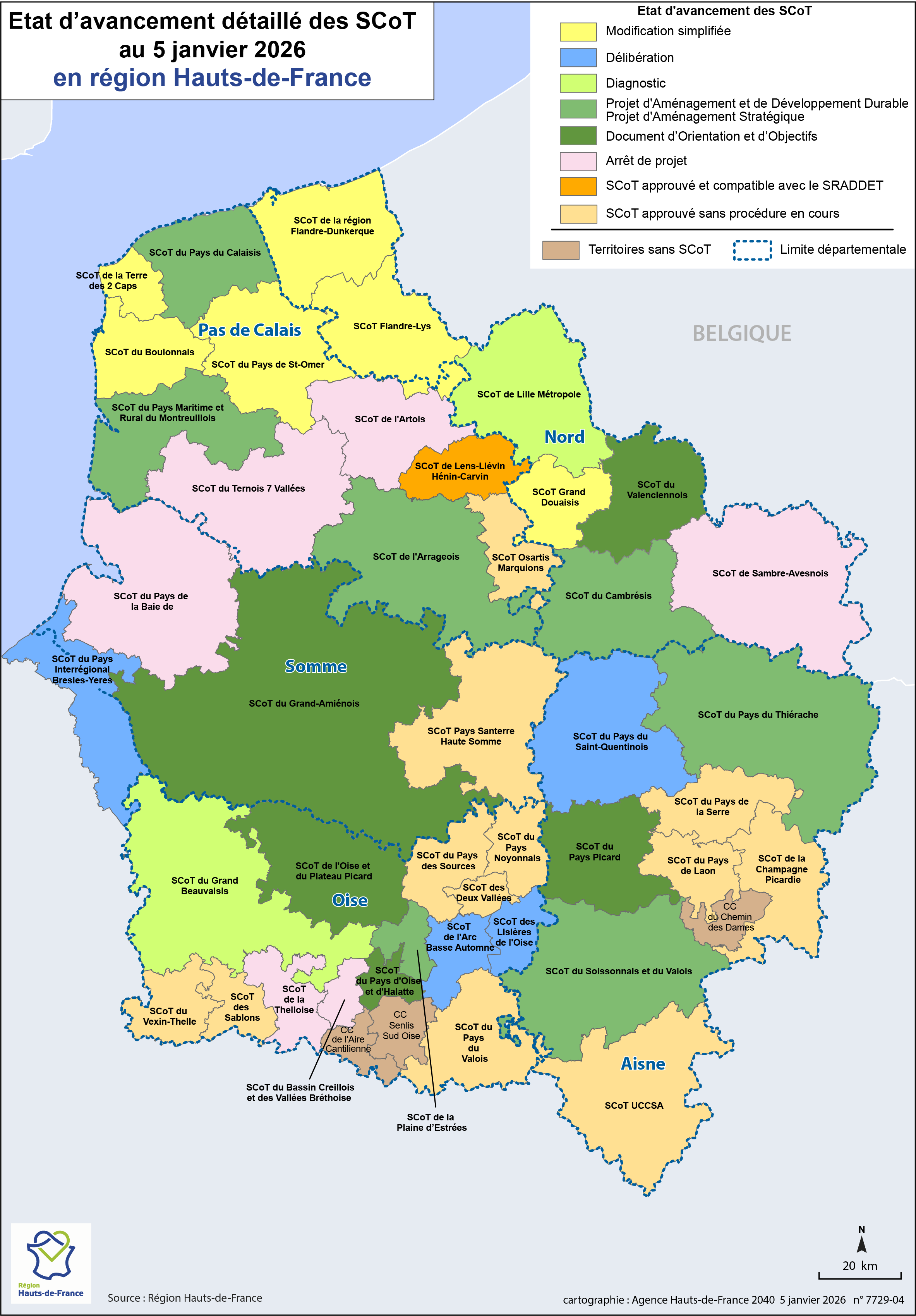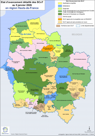 Etat d'avancement détaillé des SCoT au 5 janvier 2026 en région Hauts-de-France