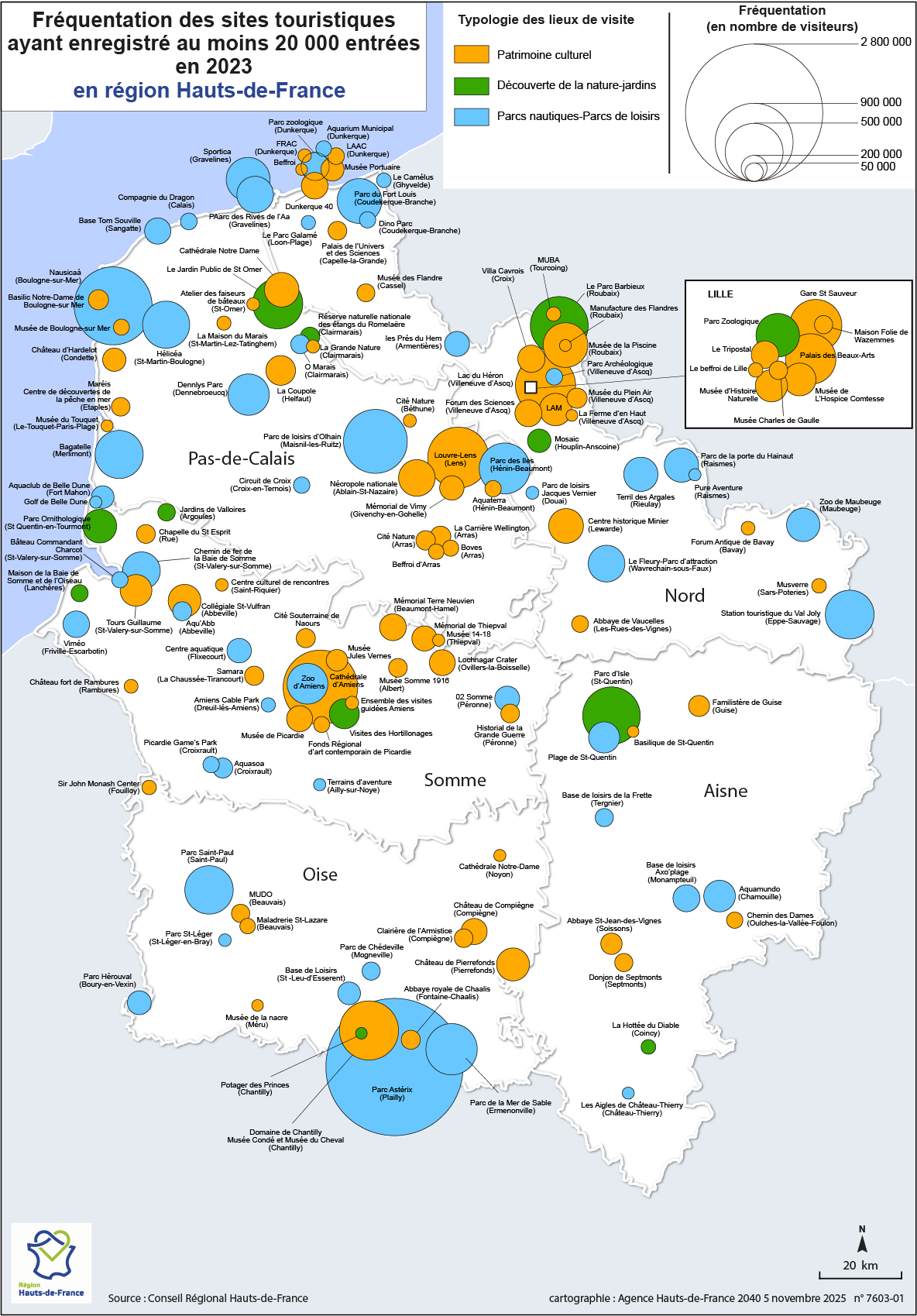 Localisation des sites touristiques par typologie et nombre de visiteurs